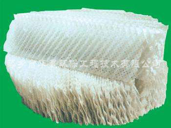 塑料規(guī)整填料具有重量輕,通量大、壓降低、比表面積高、易更換等優(yōu)點(diǎn)。絲網(wǎng)波紋填料由聚丙烯與聚丙烯腈線混合編織網(wǎng)組成。波紋填料可采用聚丙烯PVDF板,為提高傳質(zhì)效率,板上可開(kāi)孔。塑料規(guī)整填料有:板波紋填料、孔板波紋填料、絲網(wǎng)波紋填料和斜波紋填料等。